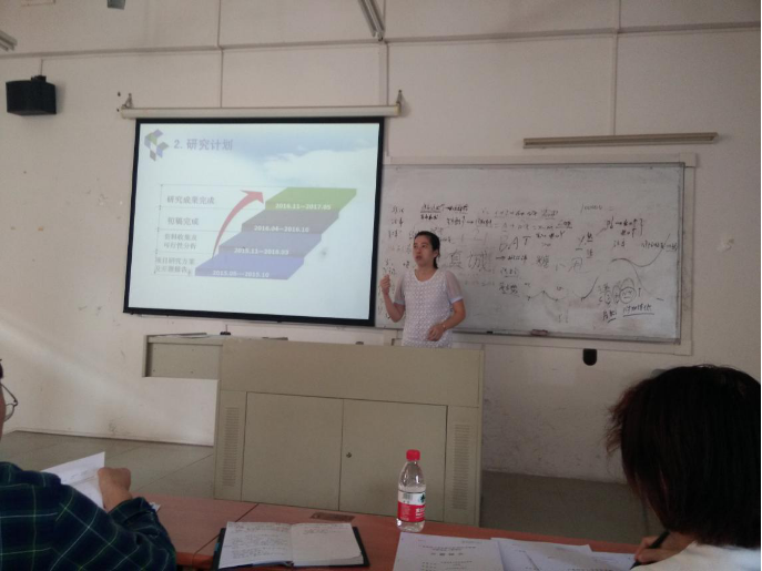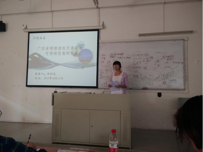 共有3个开题论证的项目,由项目负责人进行PPT汇报,分别是:荣佳老师的《证券投资分析实践创新能力培养》、黄丽霞老师的《对外贸易对广东省经济的影响和研究》、朱利先老师的《广东省碳排放权交易市场可持续发展研究》。