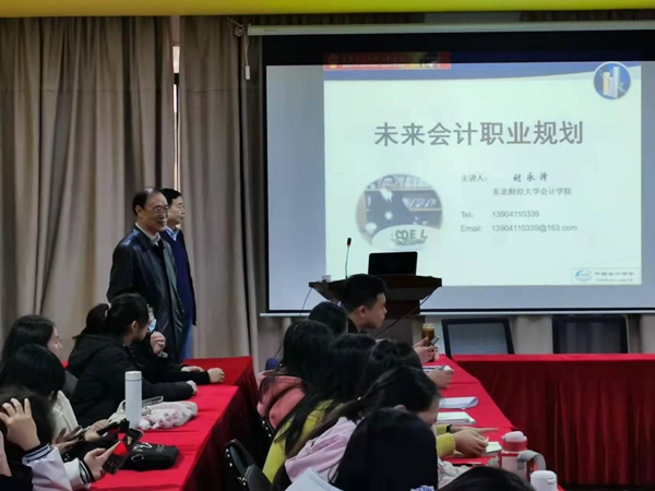 讲座伊始,陈美华副校长对刘永泽教授的到来表示感谢,并简要介绍了刘永泽教授的学术成就,同时希望在座的同学们在学好专业的同时,结合自身的兴趣、性格,与可能的职业方向进行分析匹配,做好职业规划。讲座围绕“未来会计职业规划”的主题,从“会计职业变化的趋势”“未来的会计岗位”“未来社会需要的会计人才”三个部分展开。