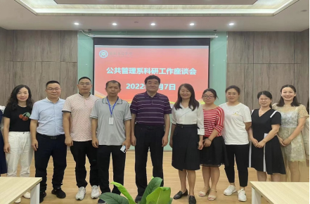 2022年7月7日下午3时30分,经管理学院李招忠院长提议,特邀管理学院特聘教授、广东省神经经济学重点实验室主任刘耀中博士、管理学院工商管理专业负责人潘文超教授(博士)与公共管理系教师在教师发展中心互动室5开展科研座谈会,会议由公共管理系主任袁仕海副教授主持,公共管理系副主任和骨干教师及青年教师代表参加了会议。
