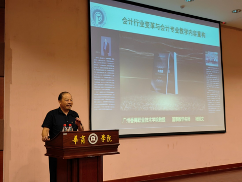 陈美华副校长向国家“万人计划”名师、广州番禺职业技术学院财经学院院长杨则文教授颁发了威廉希尔williamhill中文客座教授聘书。聘任仪式后,杨则文教授为我院师生作了题为“会计行业变革与会计专业教学内容重构”的学术报告。