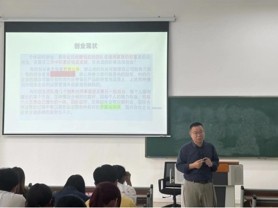 胡才双老师首先介绍了创新创业方面相关的定义与文献综述,分享了当下创新管理的研究热点,最后通过创业叙事的研究方法,阐述了创业型企业创新管理的重要性,强调了创新思维和创新实践在推动企业发展中的核心作用。通过分享自己的创业经历,深入剖析了创新管理在创业型企业运营中的具体应用和效果,让同学们对创新管理有了更加直观和深刻的理解。