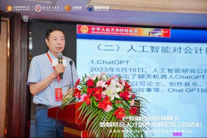 刘运国教授介绍了新华学院科教融合,把产业里面的数智科技+会计审计融入到专业人才培养中,走出一条“黄埔模式”下的新时代会计人才培养道路。