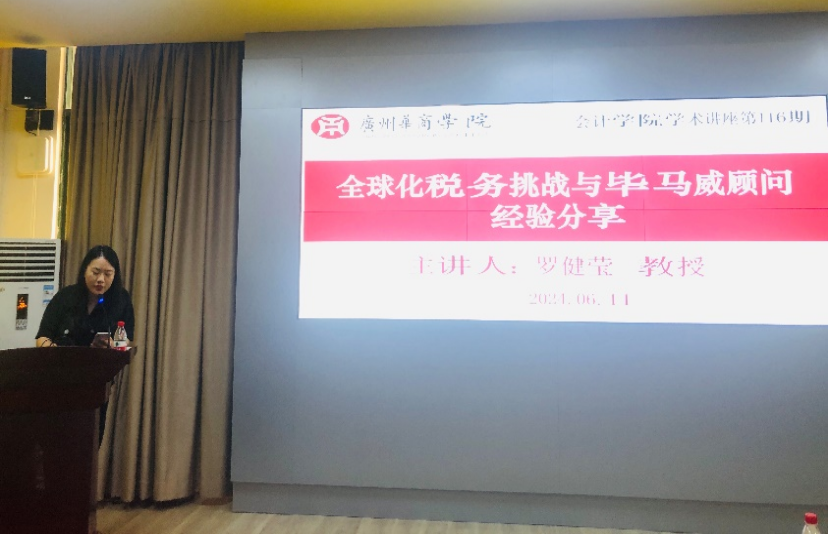2024年6月11日下午,国际四大会计师事务所——毕马威会计师事务所广州分所的税务合伙人罗健莹女士在会计学院学术报告厅作主题为“全球化税务挑战暨毕马威顾问工作经验分享”的学术讲座。威廉希尔williamhill中文会计学院院长姚凤民教授、会计学院副院长刘善球教授,会计学院税务系主任李志凤副教授、税务系高艳荣教授以及学院师生代表约120人参加了本次讲座,讲座由税务系雷雨老师主持。