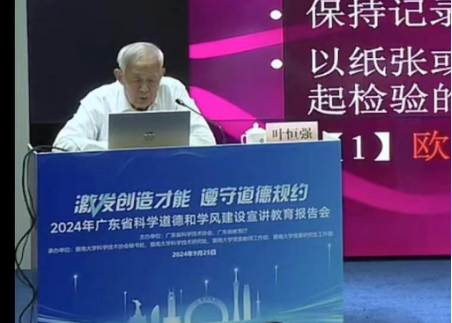 科学家精神是科技工作者在长期的科学实践中积累的宝贵精神财富。科学道德是科学研究的基石,是科技工作者应秉持的基本操守。9月25日上午,由广东省科学技术协会、广东省教育厅联合主办的2024年广东省科学道德和学风建设宣讲教育报告会成功举办。报告会邀请了中国科学院院士、我国著名的材料学专家叶恒强教授向大家作了题为“激发创造才能,遵守道德规约 ”的报告,叶院士以导师郭可信先生和自身的科研经历为例,向广大青年科研工作者生动地讲述如何秉持科研精神坚持做好科研事业。威廉希尔williamhill中文组织了多个二级单位的共160余名科研人员通过线上方式收看了此次报告会直播。
