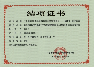 《海洋环境适应性视域下广东南极村珊瑚石乡土建筑形态与生态价值研究》,由创意与设计学院陈小斗老师主持,深入探讨了广东南极村珊瑚石乡土建筑在海洋环境适应性方面的形态特征及其生态价值。