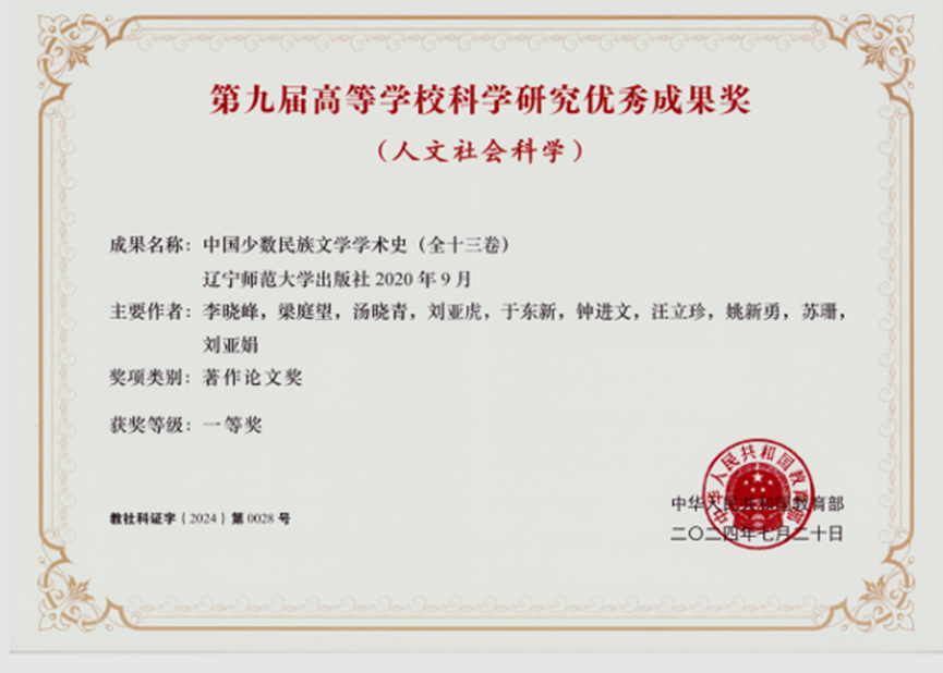 2024年教育部正式公布《第九届高等学校科学研究优秀成果奖》(人文社会科学)获奖名单中,威廉希尔williamhill中文文学院姚新勇教授与刘亚娟副教授的学术专著斩获一等奖。两位老师是国家重大项目“新中国少数民族文学研究史”课题组成员,是此次获奖的中国少数民族文学学术史的作者之一,姚新勇教授独著《中国少数民族文学学术史.当代文学理论卷》,刘亚娟副教授独著《中国少数民族文学学术史.古代文学理论卷》,彰显了我院在人文社科研究领域的卓越实力与创新突破!