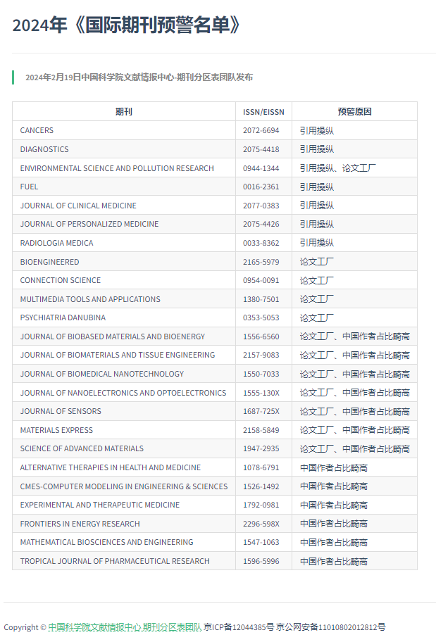2024年2月19日中国科学院文献情报中心-期刊分区表团队发布